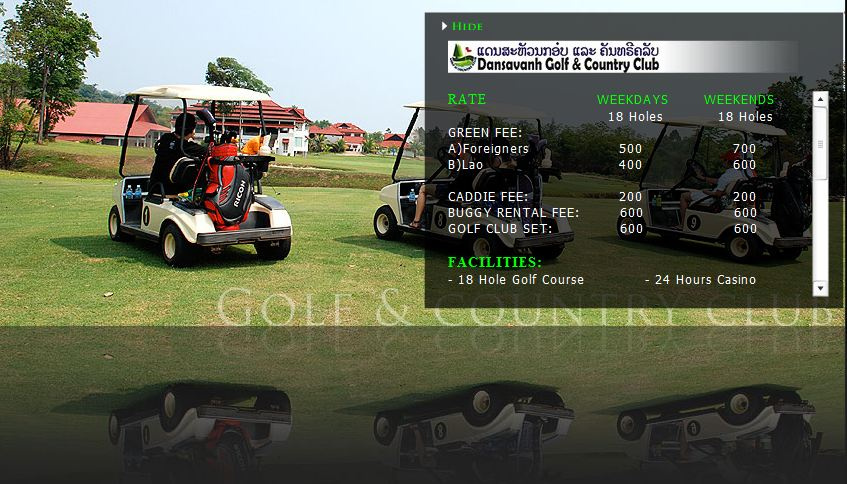 GOLF RATE : inclusive of Green Fee, Golf cart & Caddie Fee / Pax / 09 Holes or 18 Holes