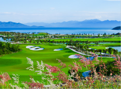 高級リゾート内にあるゴルフ場。島内にゴルフ場とウォーターパークなどもあり施設も充実しています。空港から約35分、そこから専用ボードかゴンドラで島まで移動します。